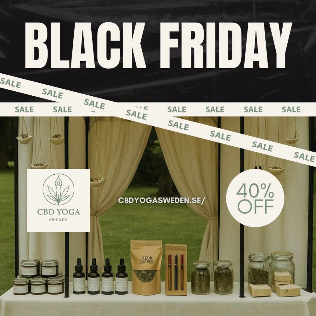 Vårt erbjudande under Black Friday (startar fredag och sträcker sig över lördag samt söndag) är en unik 40% rabattkod och min personliga vägledning, så du lättare hittar rätt produkter för just din kropp, ditt nervsystem och dina behov. Läs mer här: https://cbdyogasweden.se/black-friday-2025-40-pa-hela-vart-sortiment/